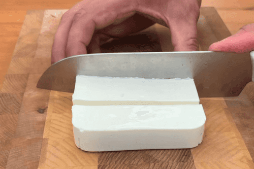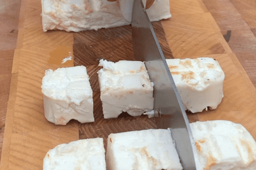 Cut the cheese into large pieces so that it doesn't crumble.