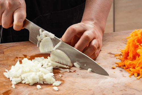 Chop the onion into small cubes. Grate the carrot on a coarse grater.