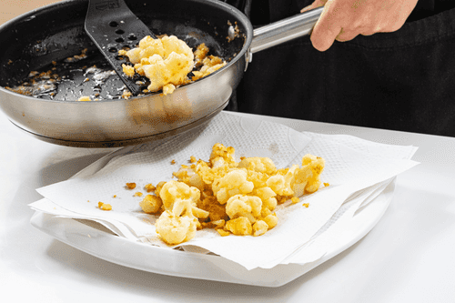 Place the cabbage florets on paper to remove excess oil, then transfer to a salad bowl.