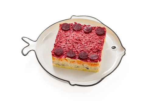 Селедка под шубой — один из самых знаковых салатов русской кухни, который стал традиционным элементом новогоднего застолья. Его история уходит в начало XX века, когда закуска из селедки и овощей символизировала единство народа. Сочетание соленой сельди, сладковатой свеклы и нежного картофеля создает богатый, сбалансированный вкус, дополненный пикантностью лука и кремовой текстурой майонеза. Этот салат не только радует глаз яркими слоями, но и насыщает, превращаясь в полноценное блюдо. Охлажденный перед подачей, он раскрывает свой вкус еще глубже, делая каждый слой особенно выразительным. 'Шуба' не просто украшает стол, но и собирает за ним близких, создавая теплую, праздничную атмосферу.
