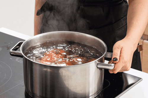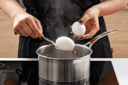 Place the eggs in boiling water and cook for 13 minutes. Cool under running water.
