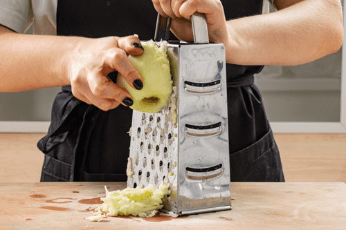 Peel the apple and remove the seeds, then grate it on a coarse grater.