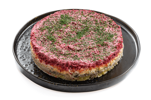 Salad 'Shuba' is a cult dish of Russian cuisine and a symbol of festive gatherings. Its history dates back to the Soviet past when it became a favorite for winter celebrations. The harmony of layers creates a rich and delicate taste: the juiciness of pickled herring resonates with the sweetness of baked vegetables, the softness of eggs softens the texture, and apple adds freshness. Dressed with mayonnaise, the salad becomes juicy while dill adds aroma. 'Shuba' is not just a dish but a family tradition where each layer plays its unique role. It is best served chilled to fully reveal all flavors. It is perfect for festive evenings when you want to delight your loved ones with something familiar yet truly celebratory.