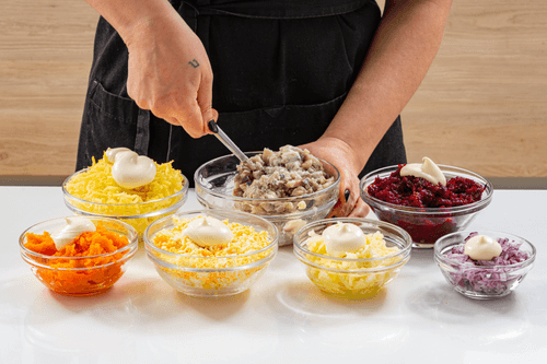 Herring under a fur coat in layers