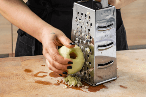 Peel the apple and remove the seeds, then grate it on a coarse grater.