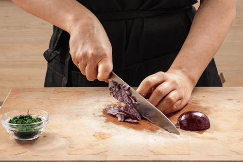 Finely chop the onion and dill.