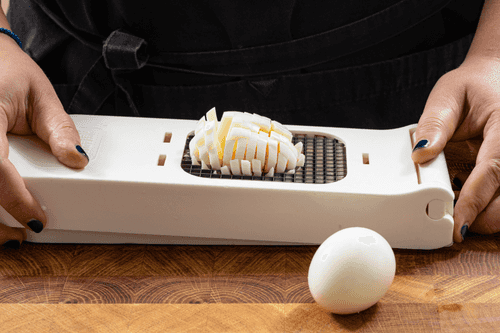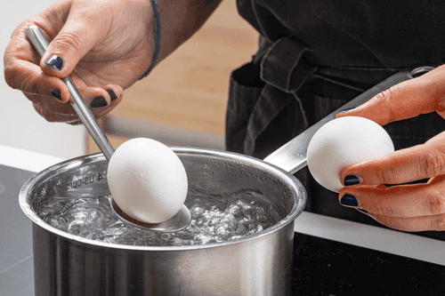 Boil water in a small saucepan, add the eggs, cook for 12 minutes, then cool under running water.