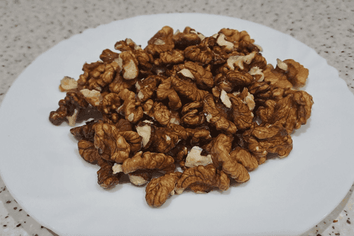 If necessary, clean the walnuts from the shell, wash them well, and dry them a little in a pan.