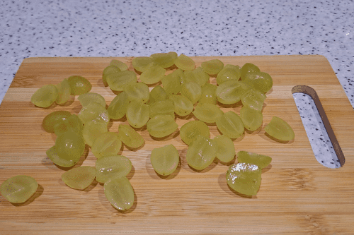 Wash the grapes well, separate them from the stem. Cut each berry in half.