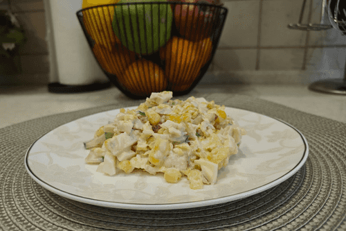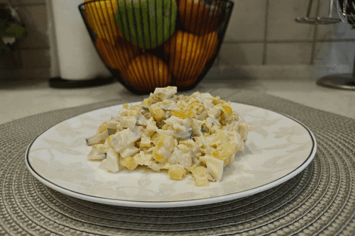 Салат из копчёной курицы и пекинской капусты — это гармоничное сочетание нежности и лёгкости. Копчёная курица придаёт ему насыщенный аромат и приятную солёность, а пекинская капуста добавляет свежесть и хруст. Яйца обеспечивают нежную текстуру, а кукуруза и огурцы — лёгкую сладость и сочность. Заправленный майонезом, салат становится нежным и сбалансированным по вкусу. Это универсальное блюдо, которое подойдёт как для повседневного ужина, так и для праздничного стола. Его простота приготовления делает его отличным выбором для быстрого, но вкусного угощения. Такой салат можно подавать как самостоятельное блюдо или в качестве дополнения к мясным и овощным гарнирам. Он несёт в себе уют домашней кухни и неприхотливую гастрономическую радость.