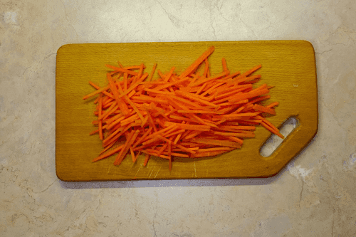 Cut the carrot into strips or grate it for Korean carrot, and add it to the salad bowl.