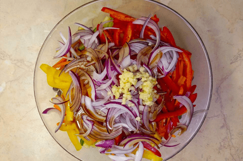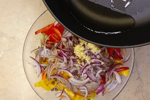 Heat vegetable oil in a pan. Pour the oil over the garlic.