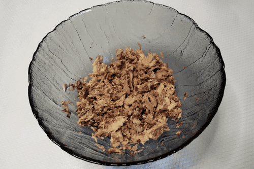 Mash the canned tuna with a fork, draining the liquid first.