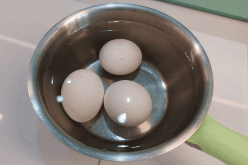Boil the eggs hard. Also, boil the cabbage and carrots in salted water for 20 minutes.