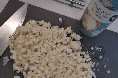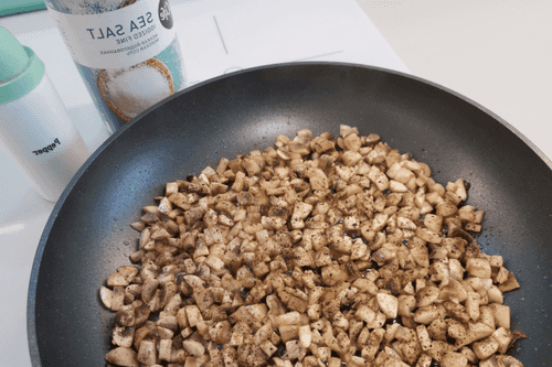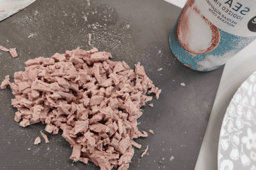 Boil the turkey in salted water for 20 minutes. Cool down and chop finely. Add salt.