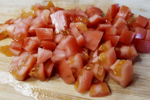 Cut the tomatoes into medium-sized cubes.