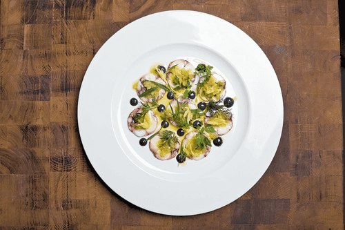 Octopus salad in citrus and oyster vinaigrette sauce