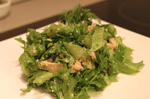 Mix olive oil with honey, pour the dressing into the salad bowl, and mix well.