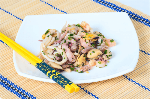 Marinated octopus salad is an exquisite dish of Japanese cuisine that combines the freshness of seafood with the brightness of Eastern spices. In Japan, octopus is often used in traditional dishes due to its tender texture and ability to absorb marinade flavors. This salad features juicy pieces of octopus soaked in olive oil and garlic, paired with the spicy kick of pepper and the refreshing tang of lime. The light sweetness of chili sauce complements the flavor, while fresh cilantro adds a special spiciness. It can be served warm or chilled, making it versatile for any occasion—from family dinners to festive gatherings. Bright, aromatic, and memorable, it will be a great addition to any Japanese menu and provide gastronomic pleasure.