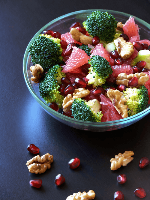 Broccoli salad is a true symphony of flavors and textures, where the freshness of vegetables combines with a rich nutty tone and fruity acidity. Broccoli adds lightness and crunch to the salad, grapefruit provides a refreshing citrus note, and red onion adds a spicy kick. Walnuts and pomegranate seeds contribute exquisite sweetness and pleasant richness. A dressing made of honey, olive oil, and wine vinegar enriches the composition, making the salad harmonious and balanced. This recipe can be considered a true work of culinary art – it surprises with its flavor combinations and works well as a light main dish or elegant appetizer. Perfect for those who appreciate healthy and delicious food!