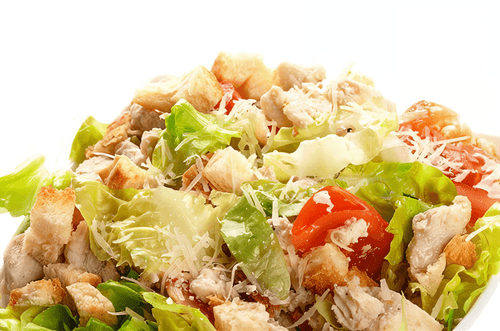 Caesar salad with garlic croutons and mayonnaise is a simple yet incredibly appetizing variation of the famous American salad. Its roots trace back to the early 20th century when chef Caesar Cardini created the original recipe. In this version, tender chicken meat, fresh crispy lettuce, and juicy cherry tomatoes harmoniously combine with aromatic garlic croutons, adding zest to the dish. Mayonnaise imparts a rich flavor, transforming the salad into a hearty and multifaceted treat. It is perfect as a light dinner or festive appetizer, delighting with its rich taste and texture. An excellent choice for those who appreciate classic combinations with modern culinary notes.