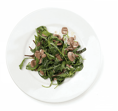 Fried salad leaves from the "Food" mix with champignons