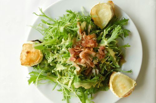 This salad of arugula, olives, pancetta, and parmesan is a true embodiment of Italian culinary mastery. Its roots trace back to traditional Mediterranean cuisines where fresh, aromatic ingredients come together in harmony of flavors. The spiciness of arugula contrasts with the saltiness of Greek olives while crispy pancetta adds depth and richness. Lemon juice and olive oil create a light, refreshing dressing that complements the delicate taste of parmesan. This salad is perfect as a light appetizer, an exquisite side dish to pasta or meat, or as a standalone dish that offers a sense of freshness and richness. Its simplicity in preparation makes it an excellent choice for an Italian-style dinner, bringing the atmosphere of warm evenings in Tuscany.
