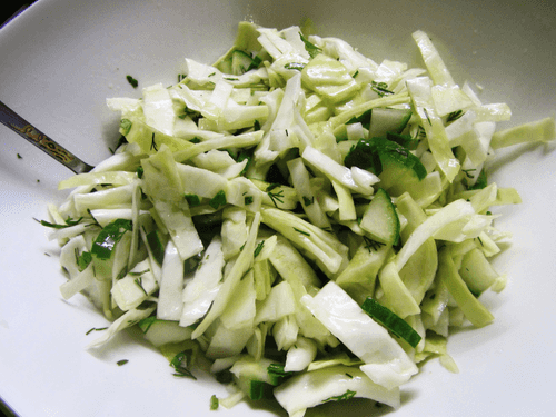 Cold Cabbage and Cilantro Salad with Garlic Dressing