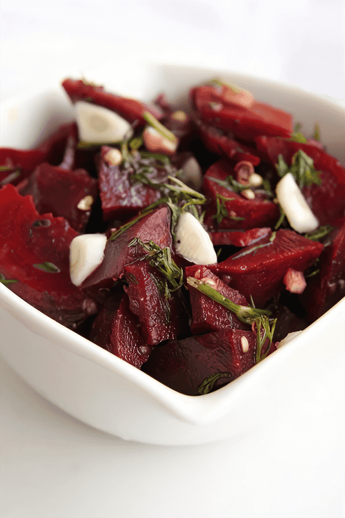 Warm salad of baked beets with dill