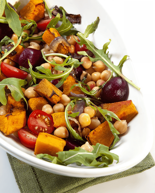 Warm pumpkin salad with chickpeas and tahini dressing is a vibrant dish of Arabic cuisine that combines the rich nutty flavor of tahini, sweet pumpkin, and the tender texture of chickpeas. It blends traditional ingredients of Arabic cuisine to create a nutritious and harmonious taste. Roasted pumpkin takes on caramel notes while chickpeas add heartiness. The tahini dressing with lemon juice gives the dish a light tang and depth of flavor. This salad is perfect as a standalone dish or as an accompaniment to the main menu. It can be served warm to enjoy the aroma of spices or slightly chilled for a refreshing effect. Rich in proteins and healthy fats, it is an excellent choice for those who appreciate delicious and nutritious food with an Eastern character.