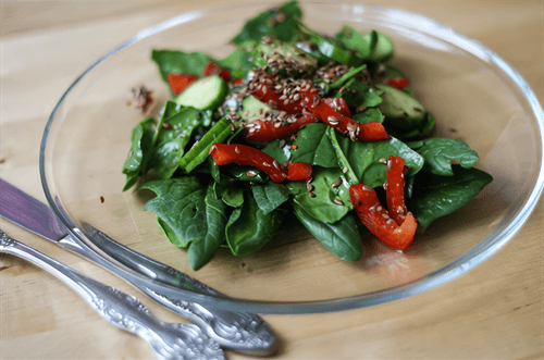 This fresh and light salad with spinach and vegetables embodies the harmony of Pan-Asian cuisine, where simplicity meets rich flavors. Spinach, tender and juicy, serves as the base of the dish, complemented by crunchy slices of cucumber and sweet pepper. Black sesame seeds add a subtle nutty note to the salad, while flaxseeds enrich the texture and benefits of the dish. The dressing made from olive oil and soy sauce unites all ingredients, creating a refined balance of freshness and depth of flavor. This salad is an ideal option for a light dinner or as an accompaniment to a main dish, delighting with its freshness and health benefits.
