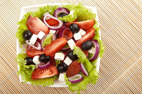 Greek salad with olive oil is the essence of Mediterranean cuisine, combining simplicity and rich flavor. It originates from the traditions of Greek peasants who used fresh seasonal produce. The juicy combination of ripe tomatoes and crunchy cucumbers harmonizes with tender feta cheese, tangy onion, and aromatic olives. Olive oil, rich in healthy fats, enhances the natural freshness of the ingredients, while spices like oregano and basil add exquisite notes to the dish. This salad is an ideal choice for a light lunch or as a complement to meat and fish dishes, with its vibrant colors and rich taste creating a sense of the sunny Greek coast in every forkful.