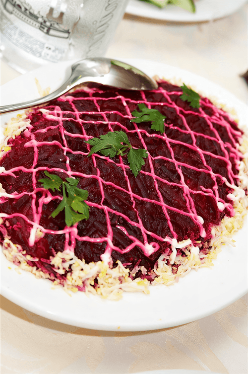 Herring under a fur coat with nuts is an exquisite interpretation of the classic Russian salad. Its history dates back to the early 20th century when the traditional version became a symbol of festive gatherings. This variation adds sophistication to the dish with crunchy walnuts and tender apple that harmoniously complement the usual layers of potatoes, beets, and salted herring. The bright color and rich flavor make it a centerpiece for any festive table. Mayonnaise adds creamy softness, while fresh green onions provide a pleasant spiciness. This dish not only pleases the eye but also satisfies with its balanced combination of ingredients. An ideal choice for special occasions that unites flavors of the past with modern gastronomic notes.