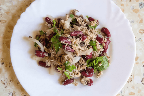 Portuguese tuna salad is the essence of simplicity and sophistication in traditional Portuguese cuisine. Its roots trace back to coastal regions where fresh tuna combines with nutritious beans, creating a harmonious and rich flavor. The dressing made from olive oil and rice vinegar with garlic and parsley highlights the Mediterranean character of the dish, adding a zesty freshness. The light acidity of the vinegar and the aromatic duet of garlic and herbs make this salad an ideal choice for a light dinner or hearty snack. After a few hours of chilling, the flavor deepens further, uniting all ingredients into a single gastronomic symphony. It can be served as a standalone dish or as a side with fresh bread and a glass of white wine, creating an atmosphere of a cozy Portuguese evening.