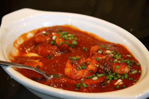 Clean the shrimp, coat in flour, and fry in olive oil.