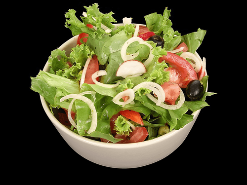 In a large bowl, place torn lettuce leaves, diced tomatoes, thinly sliced onion rings, cubed avocado, finely chopped olives, and chopped basil leaves.