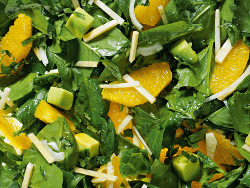 Spinach salad with orange and turnip