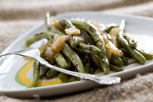For the dressing, chop the garlic and mix it with salt, gradually adding lemon juice and olive oil. Dress the warm beans with the sauce, mix, and let sit for 30 minutes.