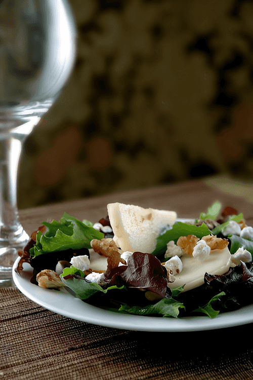 Warm salad with goat cheese, walnuts, and pear is a refined dish of Italian cuisine that embodies the harmony of flavors and textures. The tender, slightly tangy goat cheese baked to softness is complemented by crunchy nuts and sweet pieces of juicy pear. Toasted nut bread adds depth to the salad's flavor, while a light citrus-honey dressing highlights the dish's sophistication. Endive leaves and corn salad add freshness and a slight bitterness, creating a balance between sweetness and spiciness. This salad is perfect as an elegant appetizer for a festive table or as a sophisticated dish for a romantic dinner.