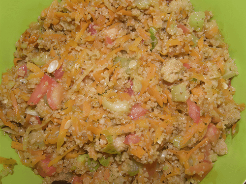 Then we mix the couscous with the vegetables.