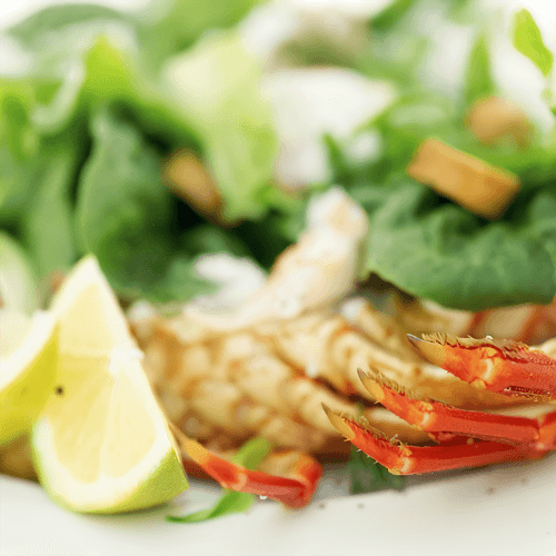 Combine crab meat with apples, lemon, and lettuce leaves. Mix the mixture, season with salt and pepper, and dress with yogurt sauce. Add a little sugar.