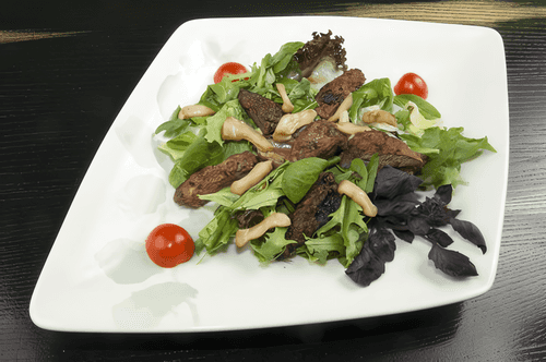 Salad with tripe, herbs, and peanuts is an exquisite French recipe that combines the tender texture of beef tripe with the crunchy freshness of salad and the spicy aroma of peanut oil. Historically, dishes with offal were valued in French cuisine for their rich flavor and benefits. This salad surprises with a contrast of textures: soft tripe harmonizes with juicy cherry tomatoes and refreshing greens. The dressing made from mustard, egg yolk, and aromatic peanut oil adds nutty depth and a hint of spiciness to the dish. Such a salad is perfect as a light dinner or an unusual appetizer for gourmets seeking to explore new gastronomic dimensions.
