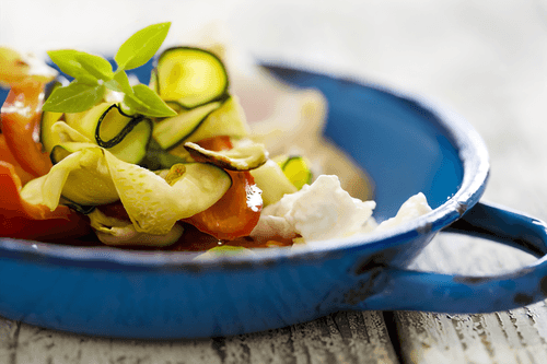 Zucchini salad with sweet pepper, cheese and sage