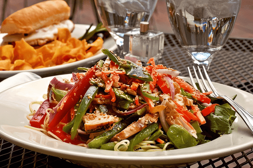 Chicken salad with sweet pepper, ginger and lemongrass