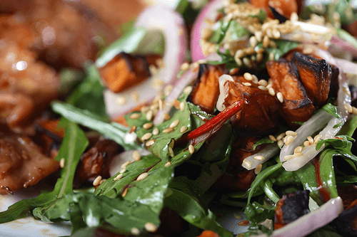 Teriyaki Chicken Salad with Spinach and Daikon