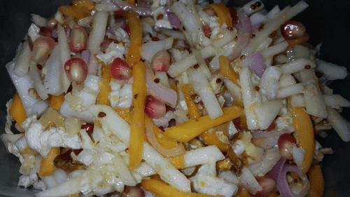 Pour the salad with dressing and let it sit for a while.