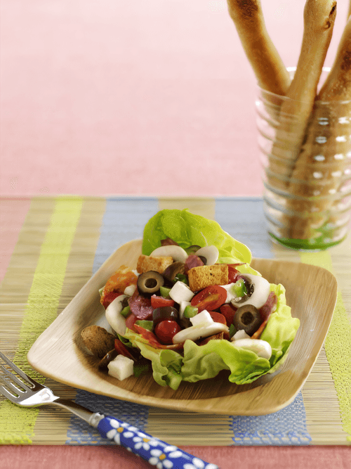 Salad with mushrooms, salami and cheese
