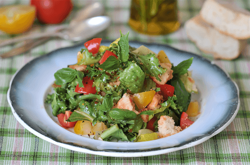 Panzanella salad is a vibrant embodiment of Tuscan culinary tradition, born in poor rural homes where every crumb of bread mattered. This salad surprises with the harmony of simple ingredients: crispy baguette pieces soak up the juices of ripe tomatoes, while the freshness of basil and green lettuce fills the dish with summer lightness. The slight acidity of wine vinegar combined with delicate olive oil adds depth to the flavor, transforming a modest set of ingredients into a gastronomic delight. Panzanella is perfect for a light dinner or picnic, bringing a Mediterranean atmosphere to the meal. It’s not just a salad — it’s a journey to sunny Italy, where every bite is infused with traditions and warmth of its cuisine.