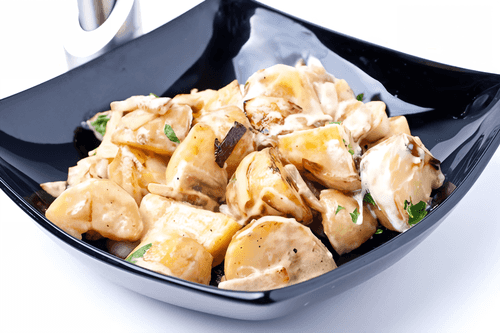Warm grilled potato salad is a vibrant embodiment of rustic Italian cuisine, combining simplicity and exquisite flavor. This salad hails from the regions of Tuscany, where fresh ingredients and aromatic herbs play a key role. Grilled young red potatoes develop a delicious crispy crust while remaining soft inside. A mixture of olive oil, lemon, and Italian herbs gives it a rich Mediterranean aroma. The dressing made from white balsamic vinegar, parsley, capers, and olives adds zesty notes and highlights its multifaceted taste. This salad is perfect as a standalone dish or as a side to meat and fish delicacies, creating the feeling of a sunny day on an Italian terrace.