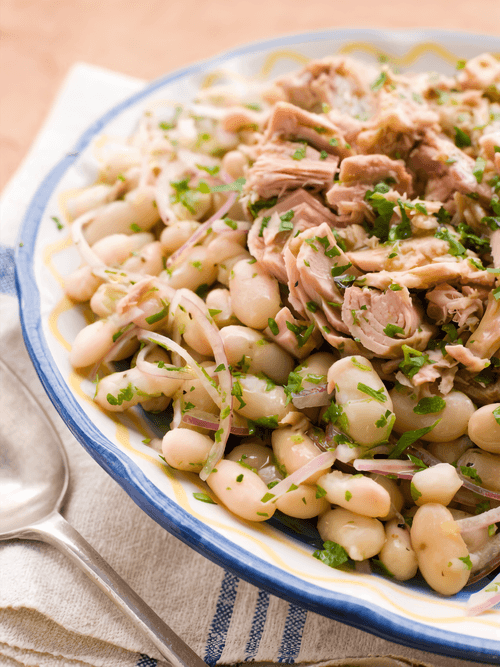 A salad of white beans, tuna, onion, and celery is a true example of Italian simplicity and elegance. It hails from traditional Mediterranean recipes where beans often serve as the base for nutritious dishes. Cannellini white beans provide a delicate creamy texture, while tuna adds a rich sea flavor. Celery and onion create freshness and a light spiciness, while olives add an exquisite salty note. The dressing of olive oil and lemon juice brings the components together in a harmonious ensemble. This salad is perfect as a standalone dish or as part of a meal served with crusty bread. It can be served as a light dinner or as an appetizer on a festive table. Its ease of preparation makes it an excellent choice for those who appreciate flavor and health in one dish.